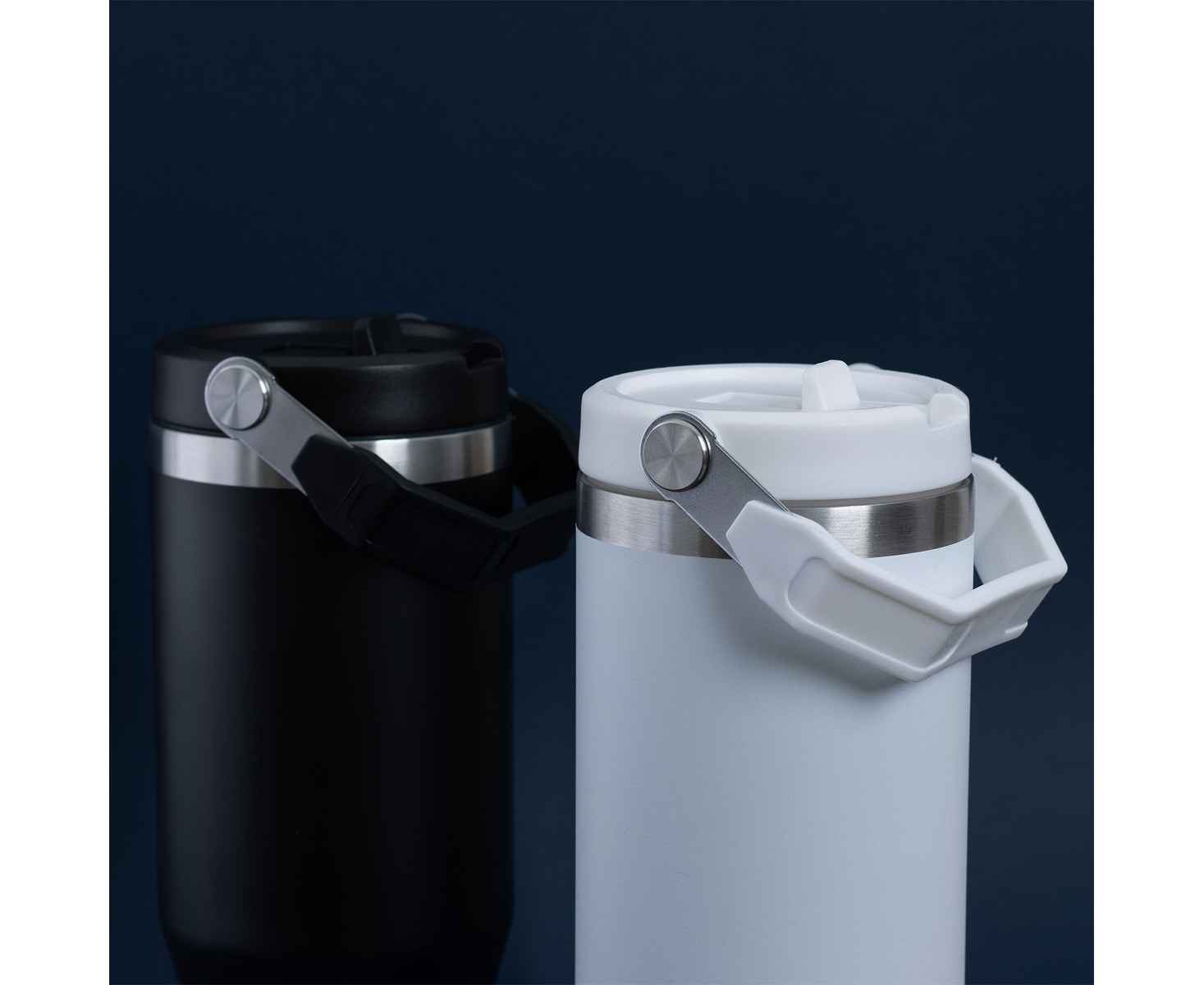 Корпус с двойными стенками из нержавеющей стали, вакуумная изоляция для сохранения температуры. Крышка продумана для удобства в любой ситуации: откидной носик для питья не требует лишних движений, а широкий диаметр позволяет легко мыть кружку и ухаживать за ней.