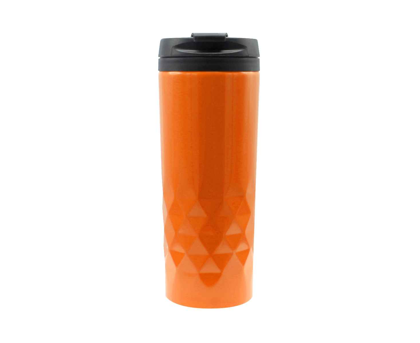 Стильная термокружка изготовлена из нержавеющей стали и дополнена оригинальными геометрическими деталями. Внутренняя колба сделана из пластика. Удобная крышка не даст расплескаться напитку. Объем термокружки – 500 мл.