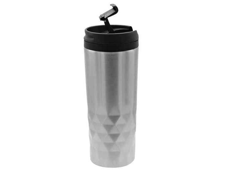 Стильная термокружка изготовлена из нержавеющей стали и дополнена оригинальными геометрическими деталями. Внутренняя колба сделана из пластика. Удобная крышка не даст расплескаться напитку. Объем термокружки – 500 мл.