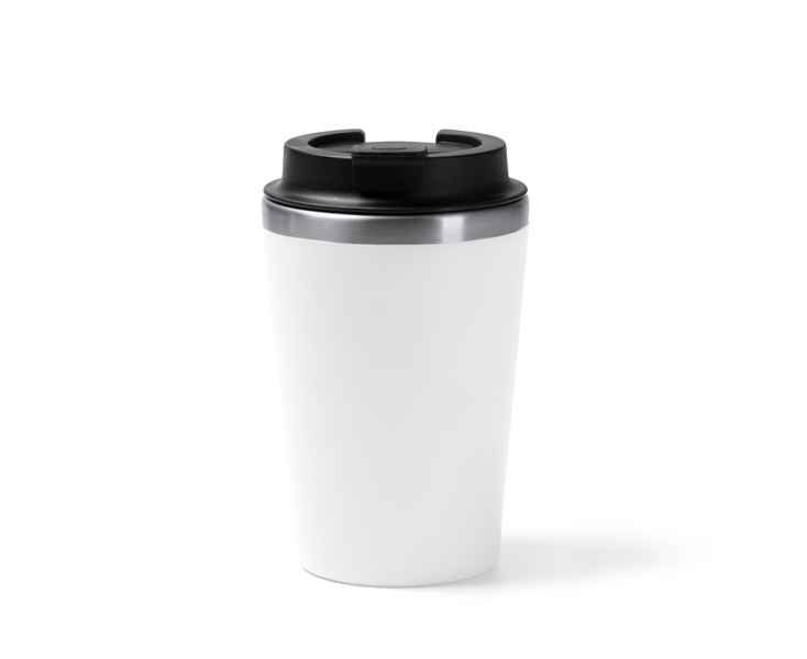Чашка с двойными стенками. Внутренняя часть из нержавеющей стали 304, внешняя часть из переработанного полипропилена. Винтовая крышка, порт для питья закрывается на клапан. Объем: 350 мл. Презентация в дизайнерской коробке.