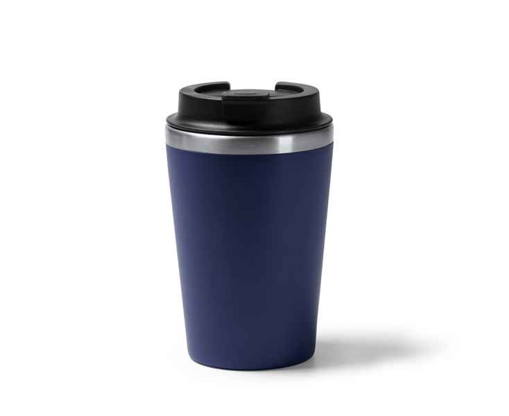 Чашка с двойными стенками. Внутренняя часть из нержавеющей стали 304, внешняя часть из переработанного полипропилена. Винтовая крышка, порт для питья закрывается на клапан. Объем: 350 мл. Презентация в дизайнерской коробке.