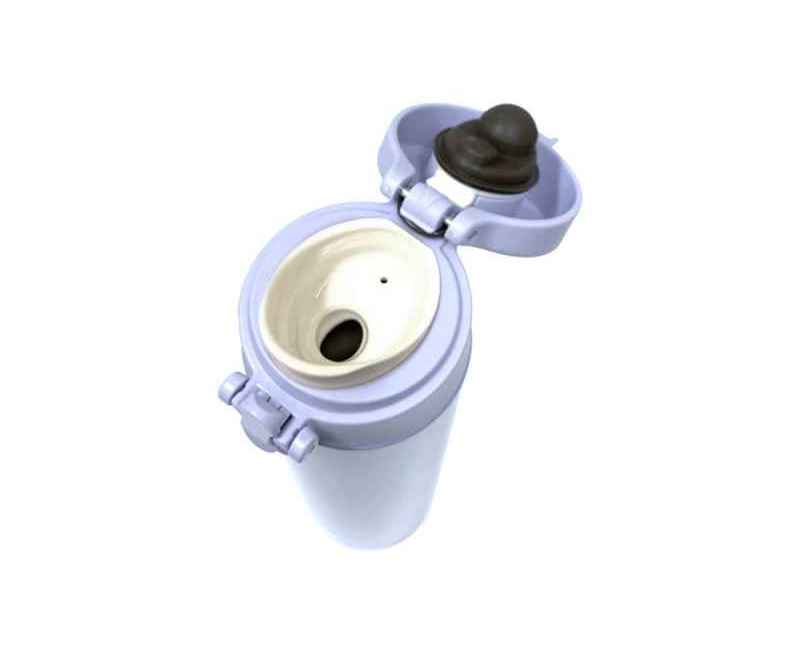 Оригинальная конструкция крышки-пробки обеспечивает максимальный комфорт в использовании термокружки. Её легко открыть и закрыть одной рукой, поэтому из термокружки можно пить даже на бегу. Для открывания термоса достаточно нажать на кнопку на фронтальной части крышки – верхняя крышка автоматически откидывается на 200 градусов, фиксируется в открытом положении и не опрокидывается при питье. Поильник плавной формы с небольшим выливным отверстием позволяет контролировать поток жидкости. Термос можно разместить в дамской сумочке или рюкзаке без опасений проливания напитка – на крышке-пробке предусмотрено специальное блокировочное кольцо. Крышка-пробка изготовлена из современных сополимеров, которые не содержат бисфенол-А (BPA free), отличаются механической прочностью и устойчивостью к высоким температурам, не выделяют и не поглощают посторонние запахи. Герметичность обеспечивают уплотнитель и прокладка из термостойкого пищевого силикона. Они снимаются для тщательного очищения.