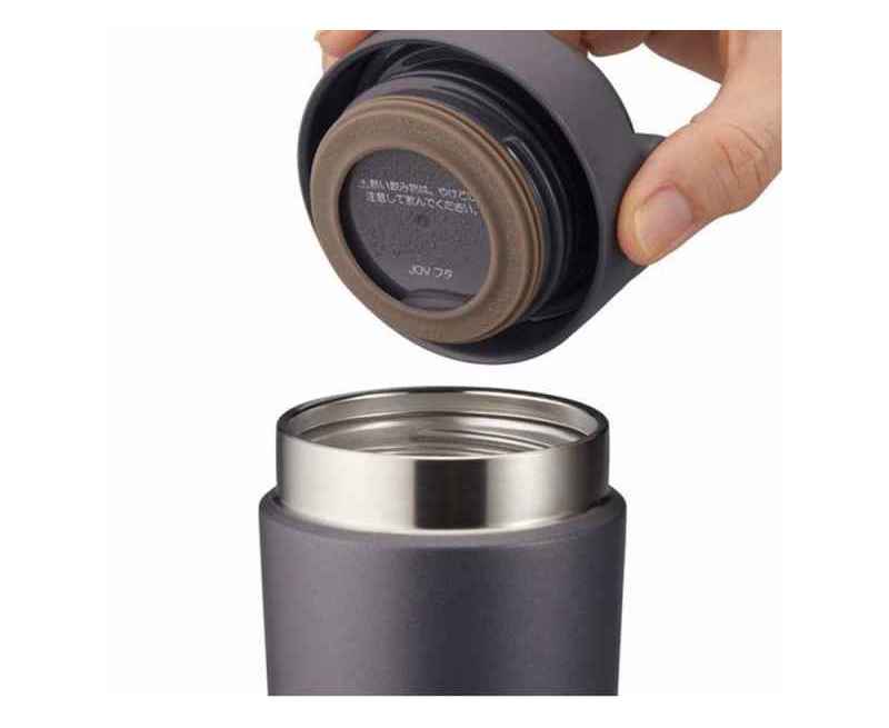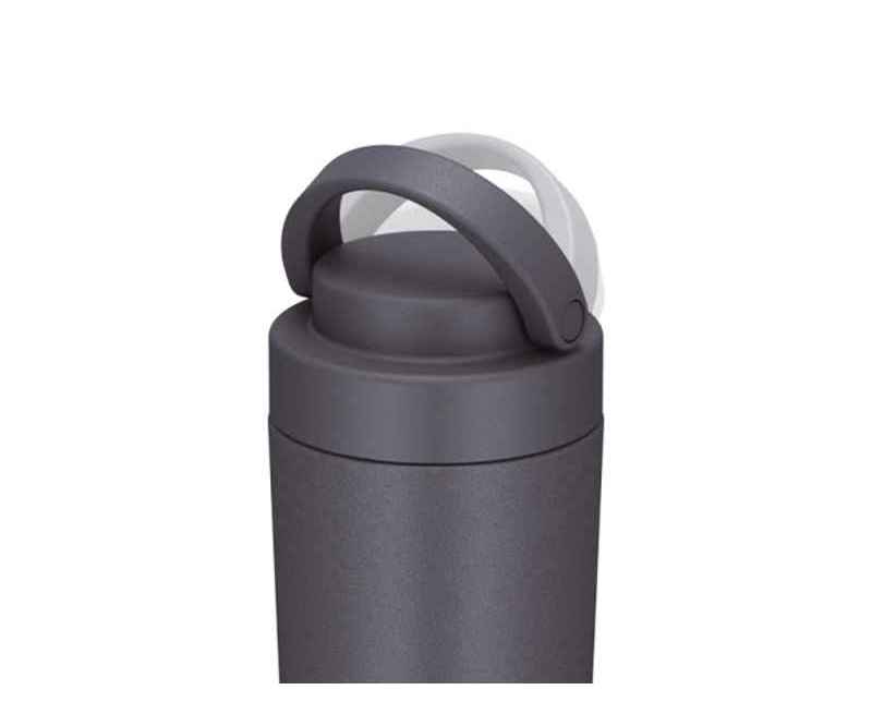 Теплосбережению способствует крышка-пробка, которая легко и быстро открывается и закрывается. Чтобы термостакан было удобно носить в руке или прикрепить к сумке или рюкзаку, предусмотрена прочная ручка с надёжным креплением к крышке-пробке. Ручка поворачивается в обе стороны и в сложенном положении интегрируется в плоскость крышки.