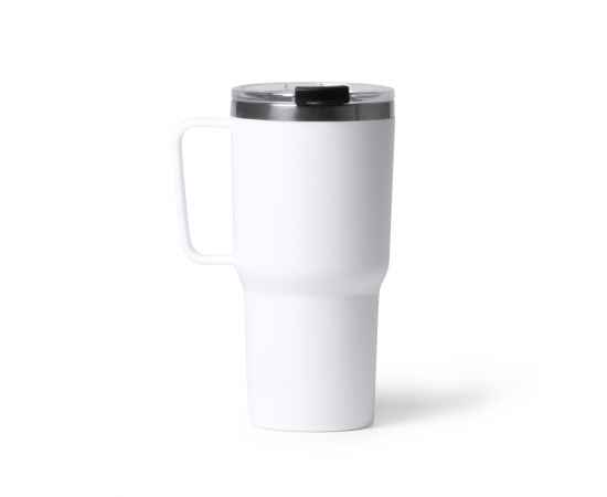 Термокружка с двойной стенкой: из нержавеющей стали (внутри), из пластика (снаружи). Объем: 600 мл.