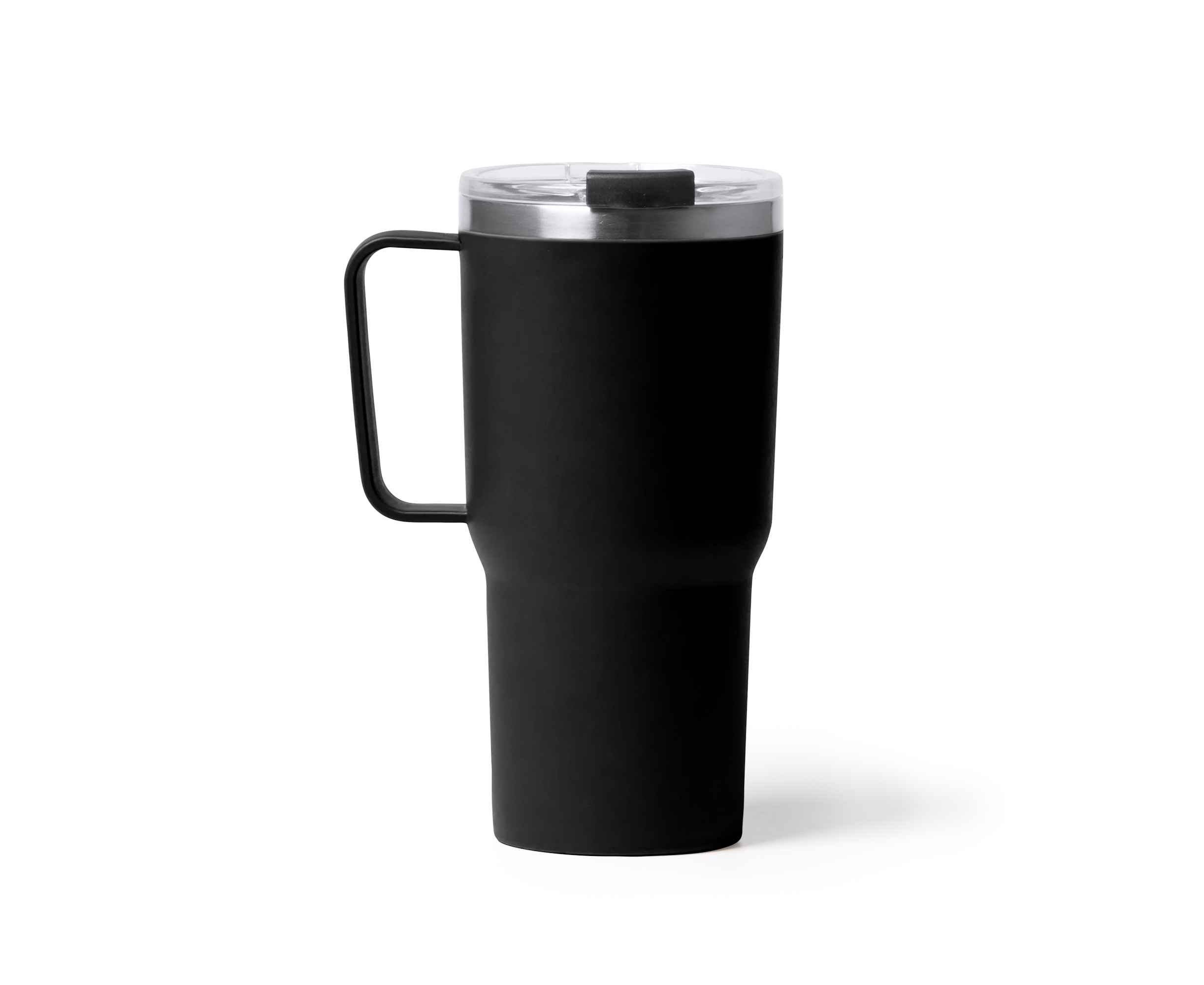 Термокружка с двойной стенкой: из нержавеющей стали (внутри), из пластика (снаружи). Объем: 600 мл.