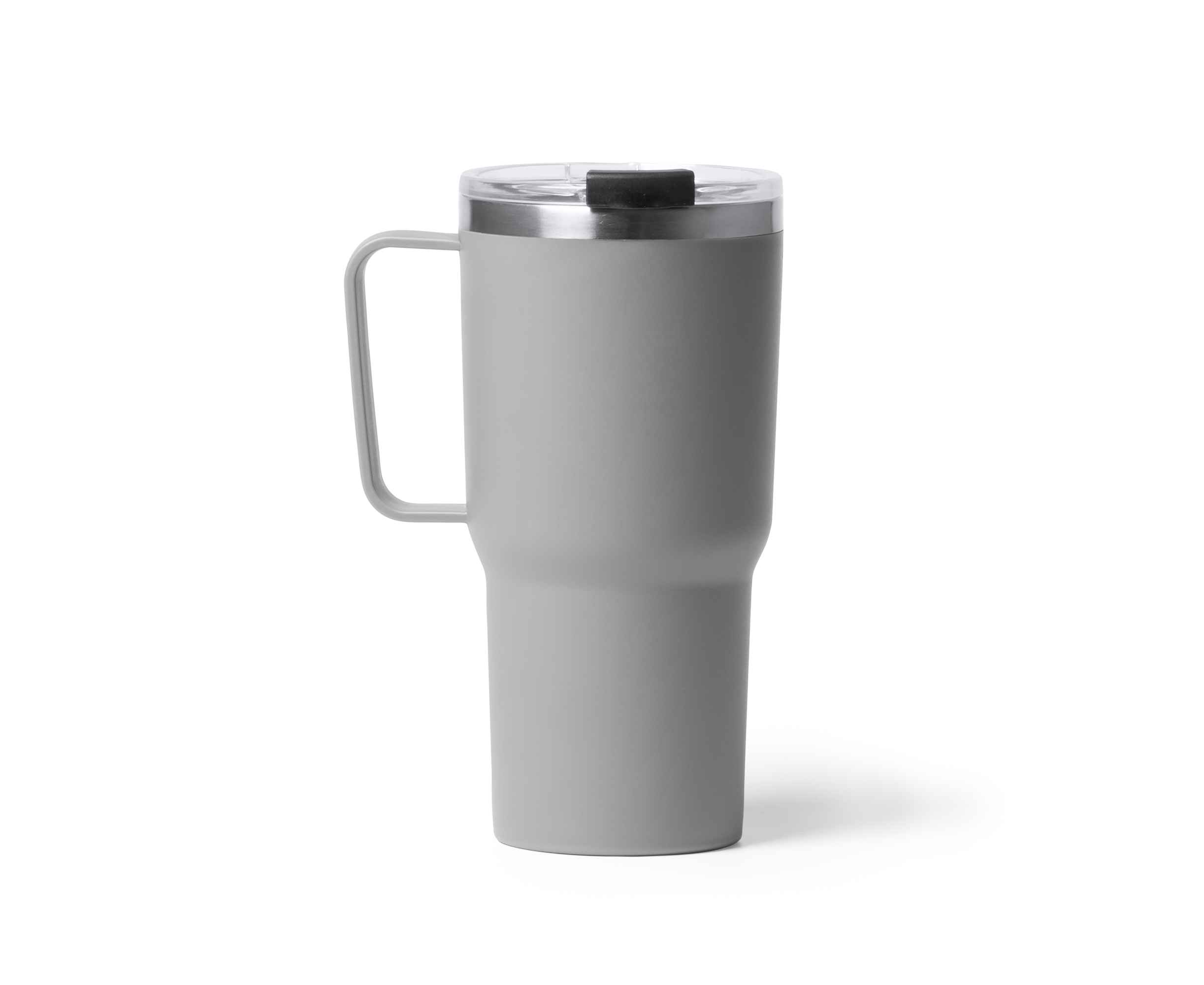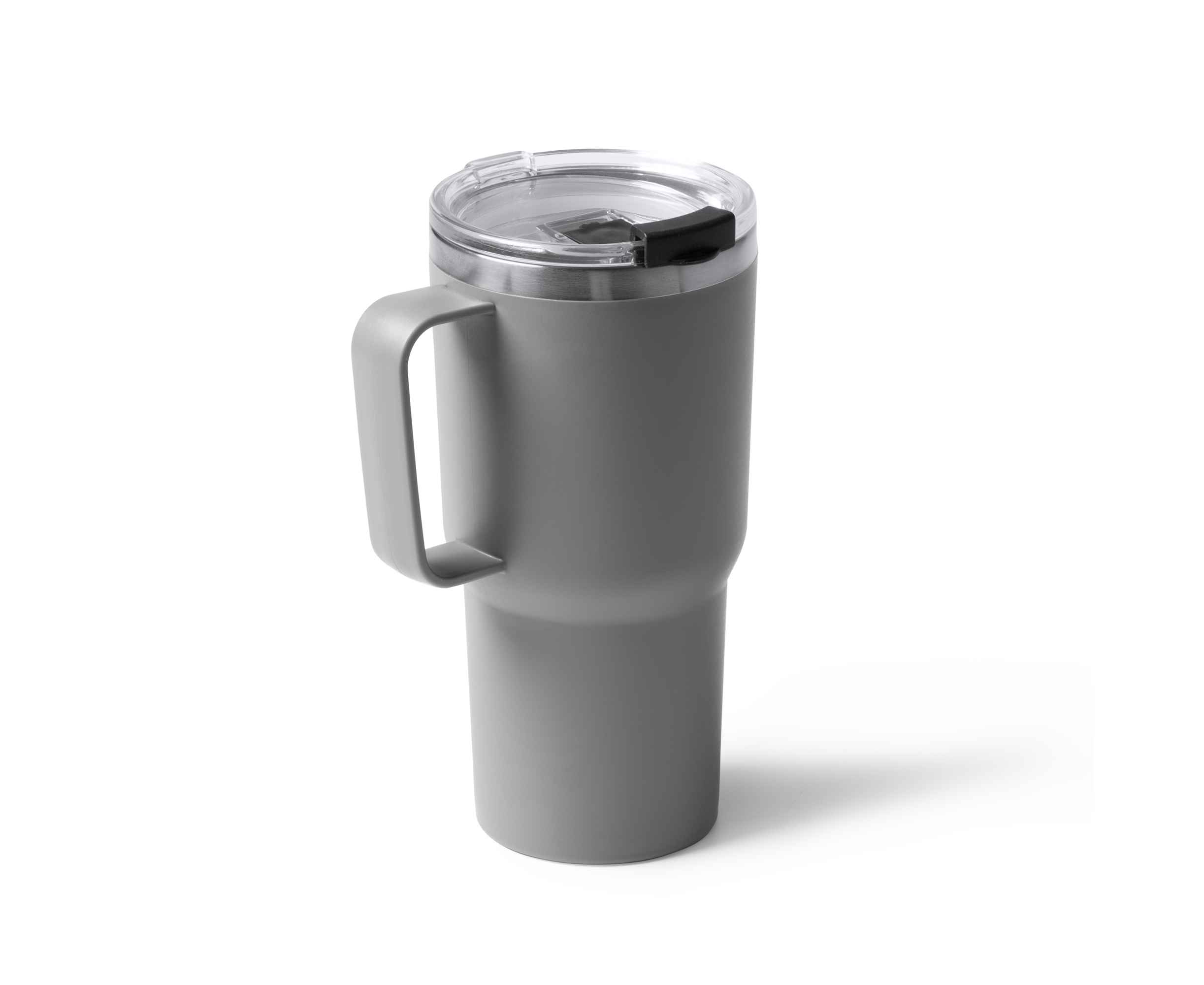 Термокружка с двойной стенкой: из нержавеющей стали (внутри), из пластика (снаружи). Объем: 600 мл.