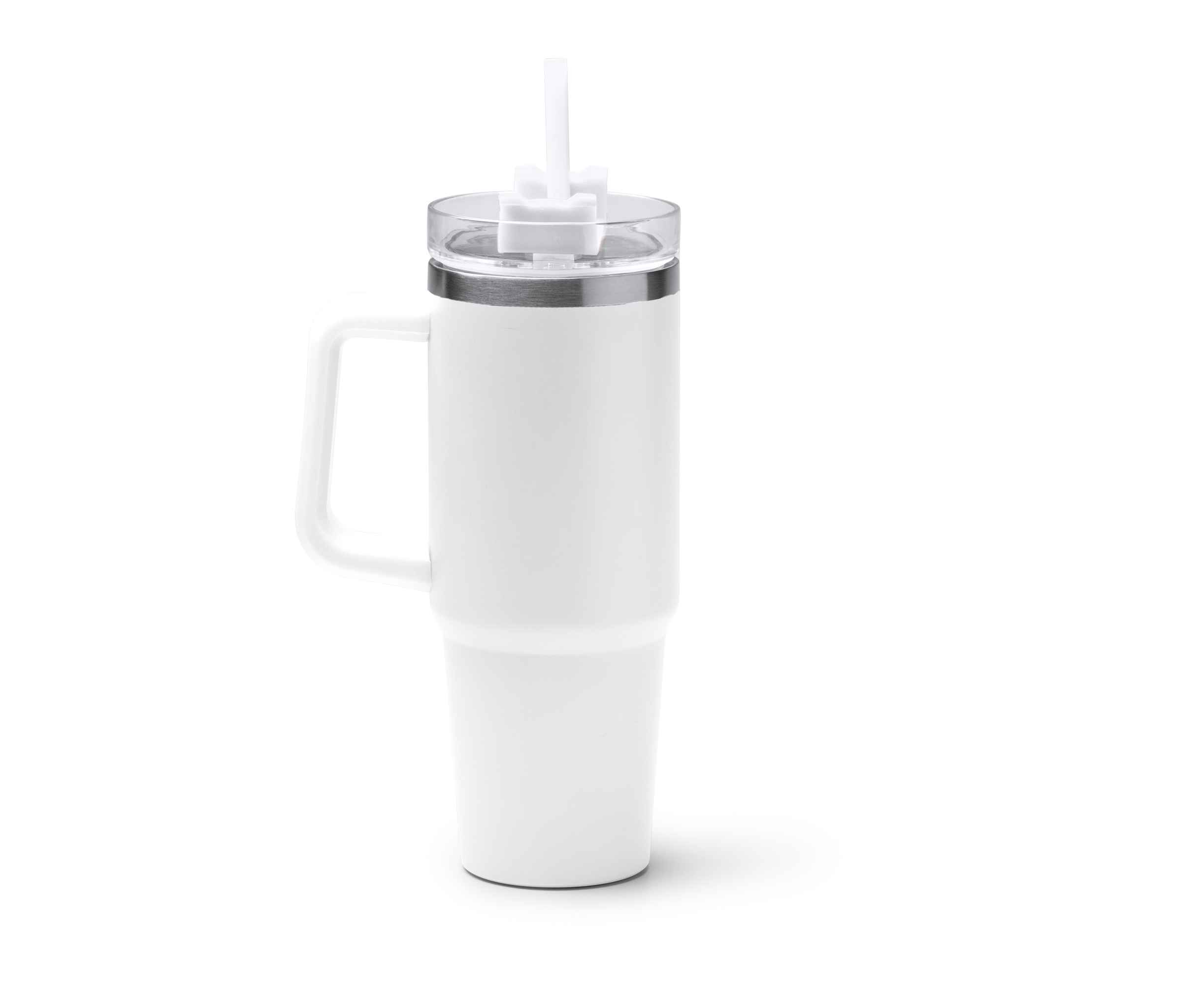 Термокружка из переработанной нержавеющей стали. Крышка с трубочкой и винтовой системой закрытия. Вместимость: 870 мл.
