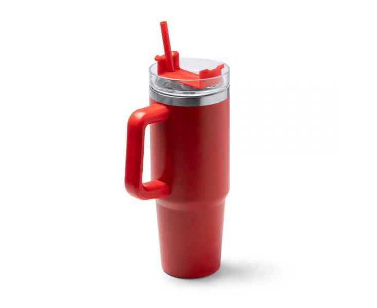Термокружка из переработанной нержавеющей стали. Крышка с трубочкой и винтовой системой закрытия. Вместимость: 870 мл.