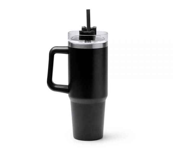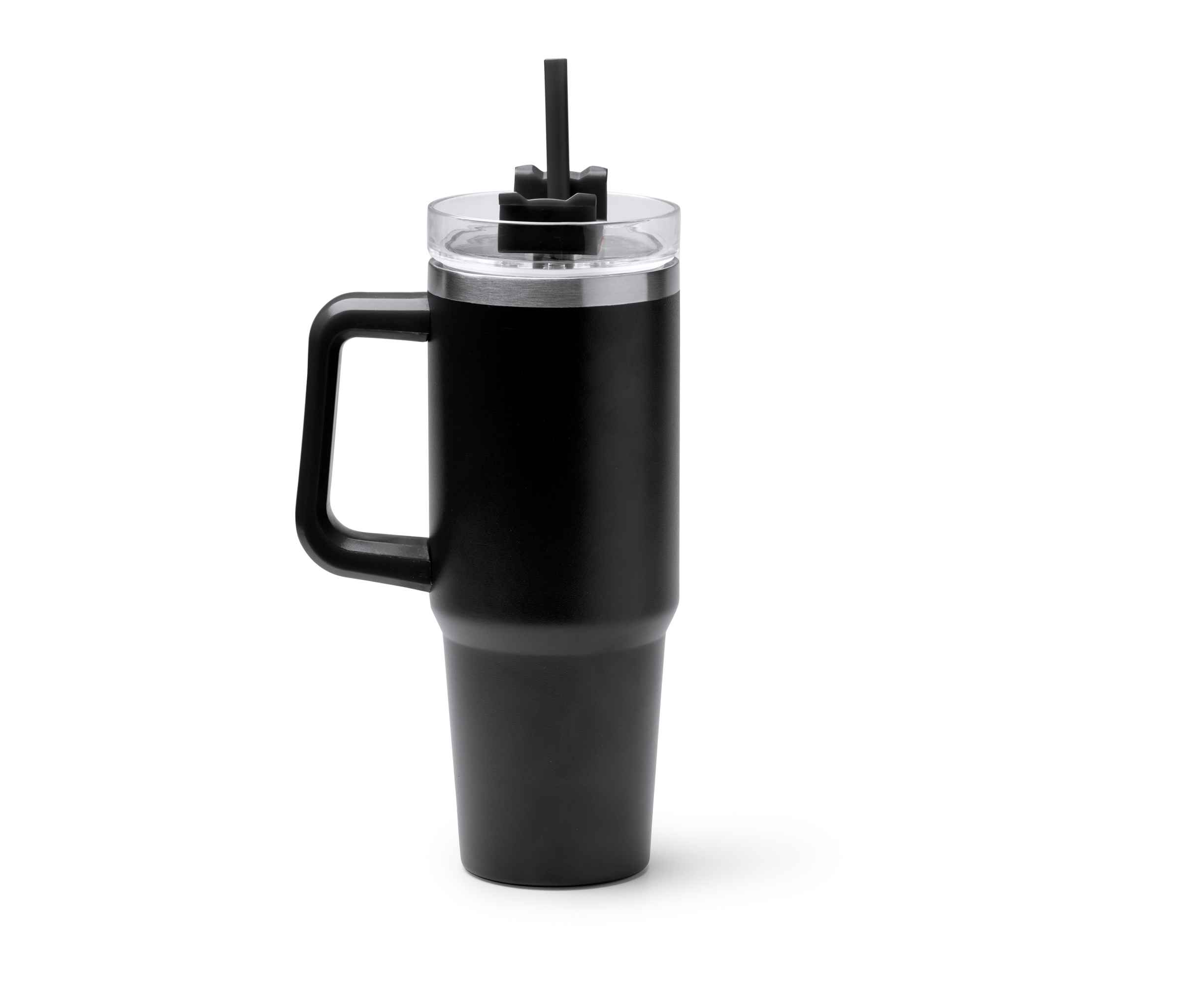 Термокружка из переработанной нержавеющей стали. Крышка с трубочкой и винтовой системой закрытия. Вместимость: 870 мл.