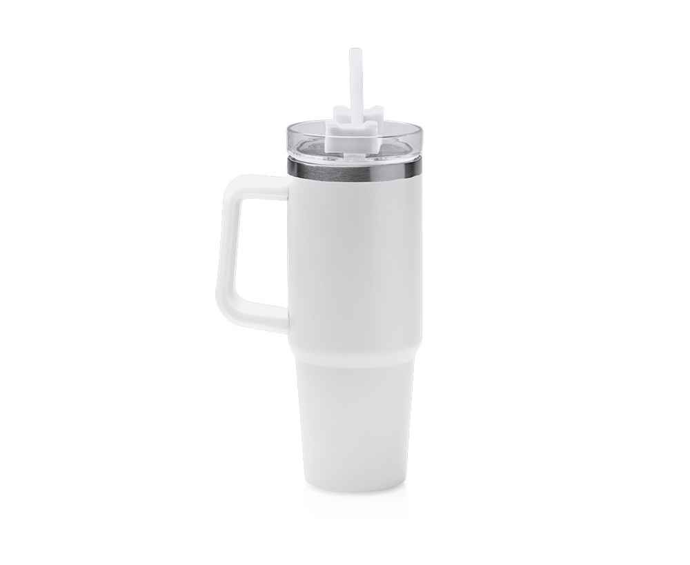Двухстеночная термокружка из переработанной нержавеющей стали 304. Крышка с трубочкой и винтовой системой закрытия. Объём: 850 мл. Поставляется в дизайнерской коробке.