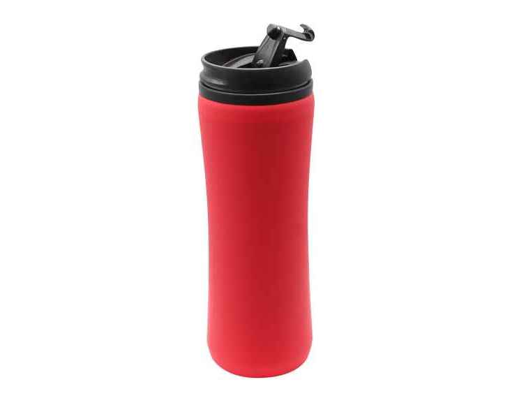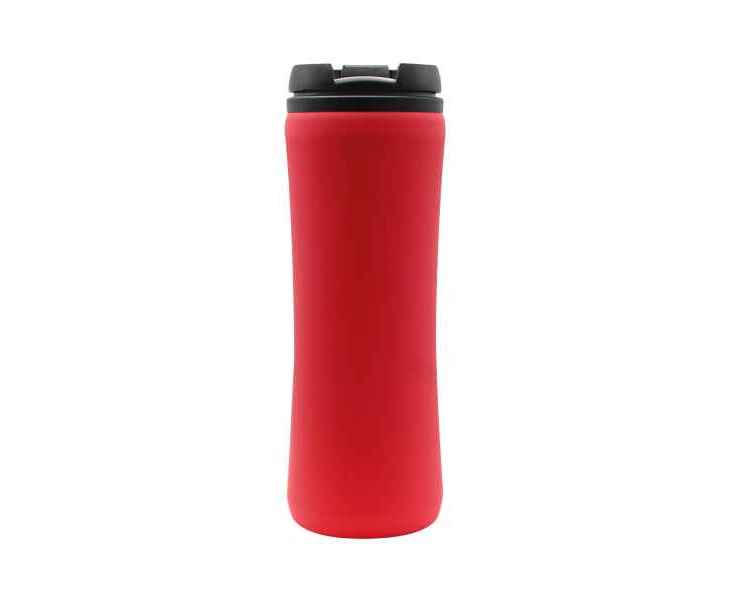 Термокружка изготовлена из нержавеющей стали с покрытием софт тач. Внутренняя колба сделана из пластика. Вакуумная конструкция. Откидной клапан позволяет пить, не снимая крышку, что помогает дольше сохранить начальную температуру напитка. Объем термокружки – 500 мл.