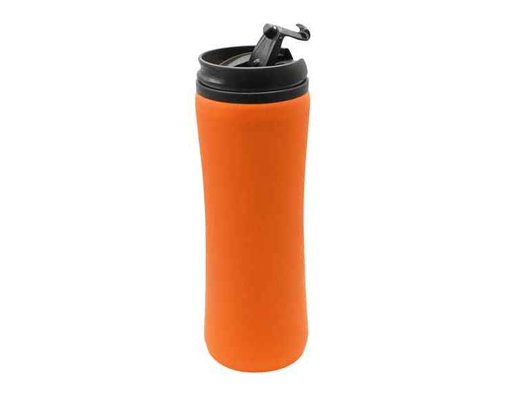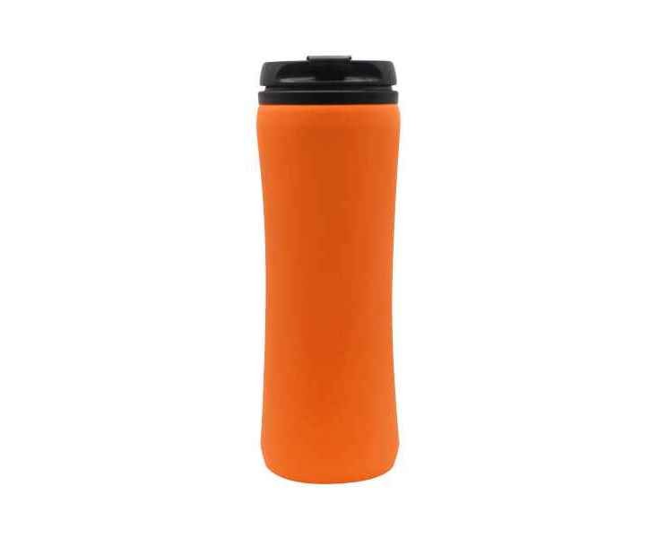 Термокружка изготовлена из нержавеющей стали с покрытием софт тач. Внутренняя колба сделана из пластика. Вакуумная конструкция. Откидной клапан позволяет пить, не снимая крышку, что помогает дольше сохранить начальную температуру напитка. Объем термокружки – 500 мл. Цвет максимально приближен к Pantone 021C.