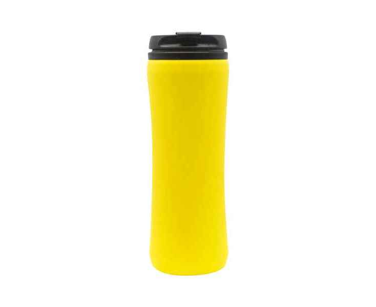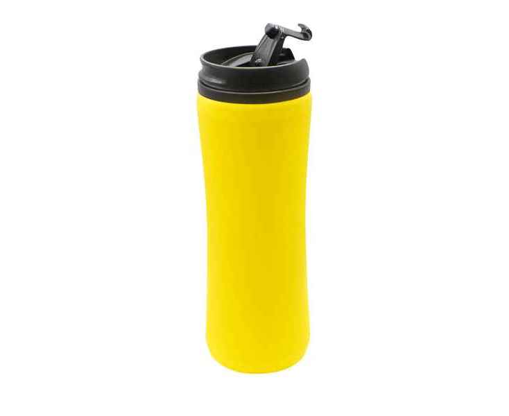 Термокружка изготовлена из нержавеющей стали с покрытием софт тач. Внутренняя колба сделана из пластика. Вакуумная конструкция. Откидной клапан позволяет пить, не снимая крышку, что помогает дольше сохранить начальную температуру напитка. Объем термокружки – 500 мл.