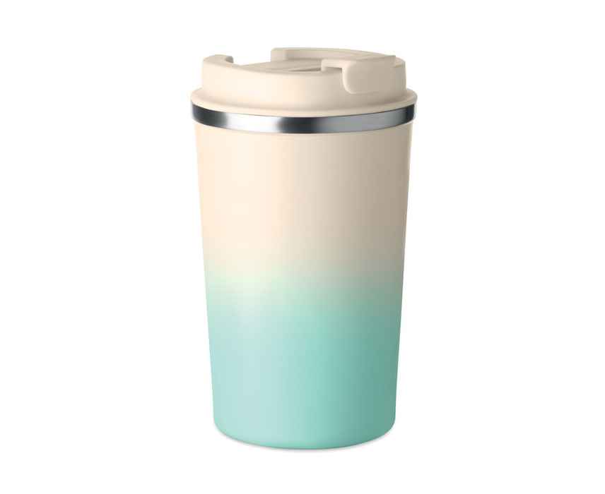 Термостакан с двойными стенками из переработанной нержавеющей стали 90% и 10% нержавеющей стали с крышкой из полипропилена. Объем: 350 мл. Герметичный.