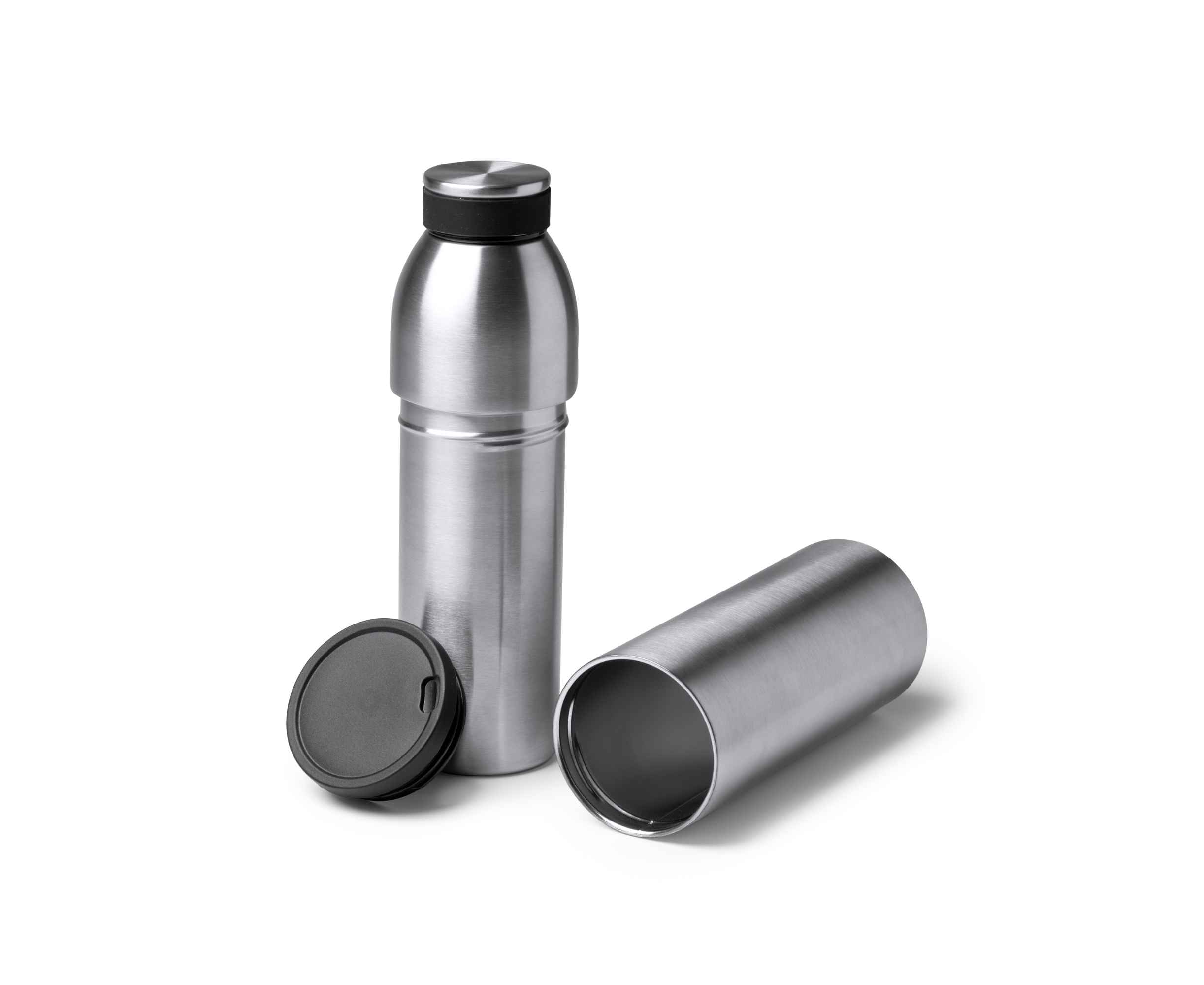 Бутылка-термос из нержавеющей стали. Емкость бутылки: 650 мл, емкость чашки: 500 мл.