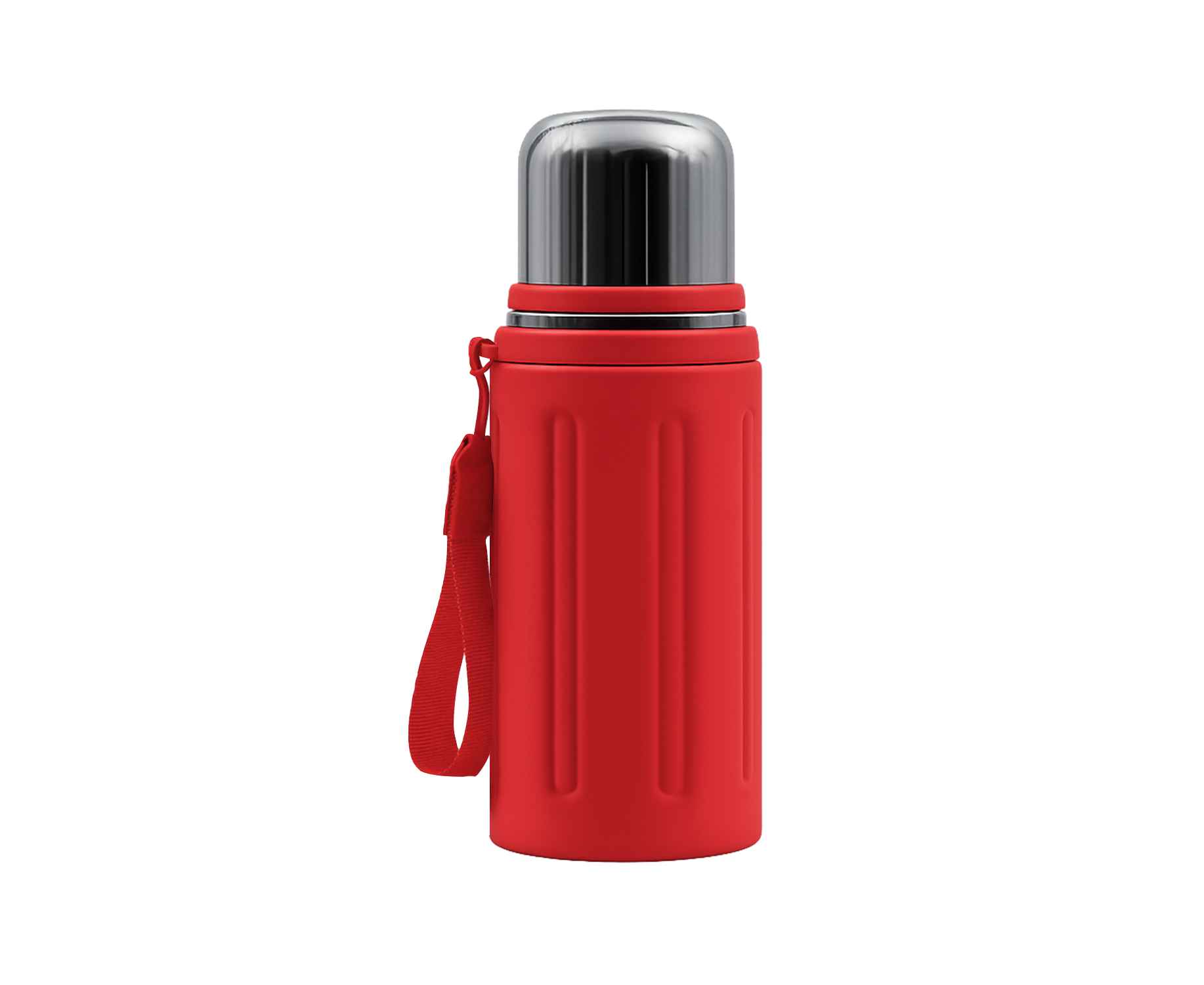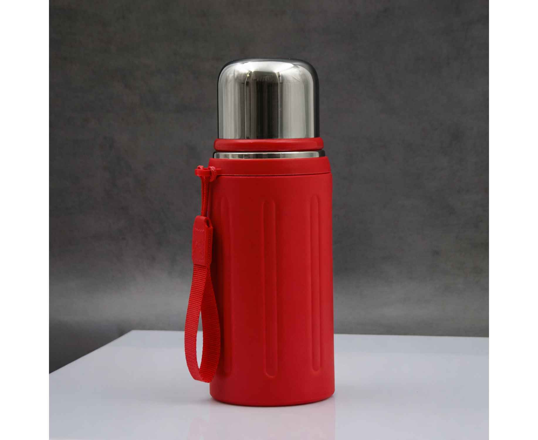 Съемный ремешок термоса сделает переноску удобной и комфортной.