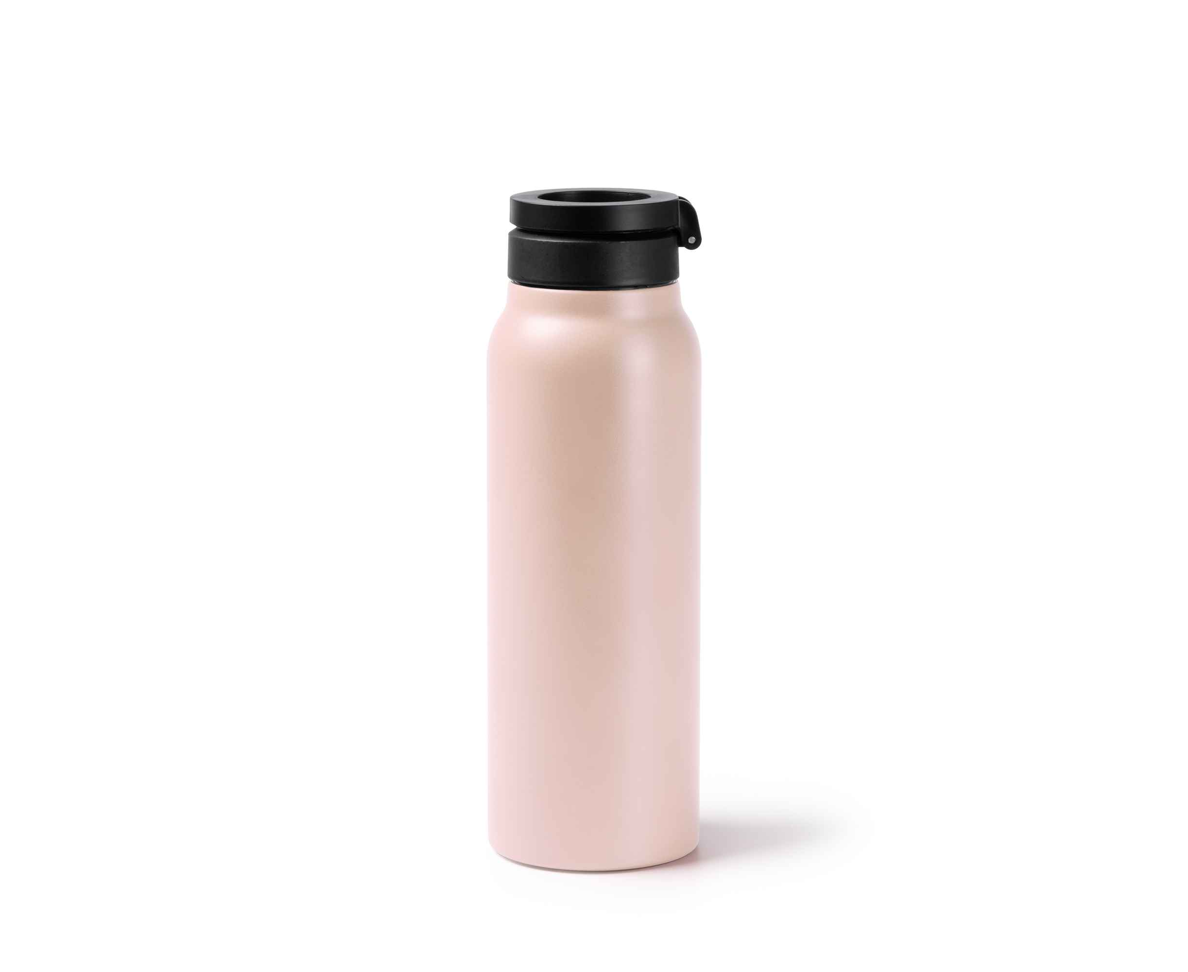 Бутылка-термос из переработанной нержавеющей стали с двойными стенками. Крышка с магнитным кольцом для держателя мобильного телефона. Со складной соломкой и нескользящей резиной на основании. Емкость: 750 мл.