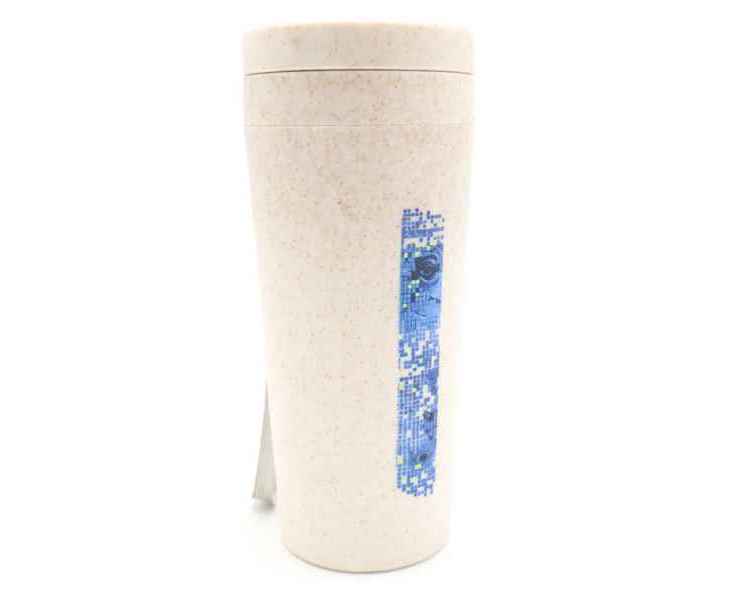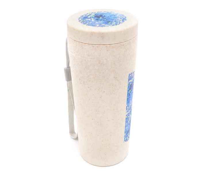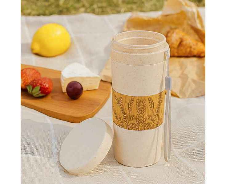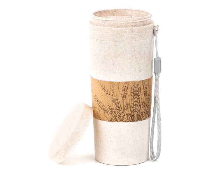 Удобный, компактный термостакан для горячих напитков. Крышка прилегает плотно и удерживает от случайных протечек. Пшеничное волокно — отличный экологичный материал, позволяет подогревать в микроволновой печи. Однако не стоит лить крутой кипяток или кипятить в нём воду, поскольку при температуре выше 80°C термостакан может терять некоторые свойства. Петелька позволит удержать стакан, если тот выскользнет с рук. Двойная стенка удерживает тепло и не даёт обжечься. Горячо во рту, а не в руках!
