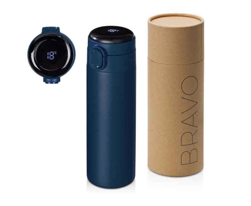 Вакуумная термокружка с медной изоляцией между стенками, которая точно не даст вам обжечься: сенсорный индикатор температуры сообщает о температуре напитка, выводя на дисплей информацию в градусах Цельсия. Что немаловажно, сенсор работает от сменной батарейки, что существенно продлит срок службы Bravo, позволяя не расставаться с полюбившейся термокружкой.