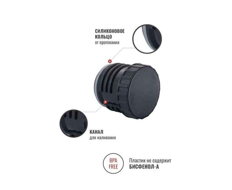 Надежная закручивающаяся пробка с силиконовым кольцом защищает от протекания и помогает удерживать температура.