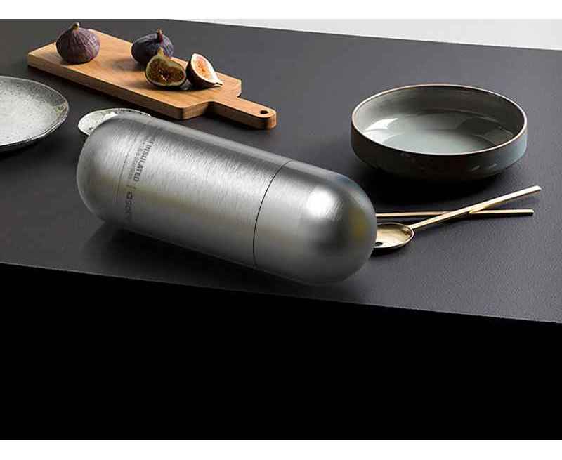 ORB — это необычный термос, форма которого напоминает пилюлю. Термос оснащен герметичной крышкой, с которой не стоит опасаться проливания.