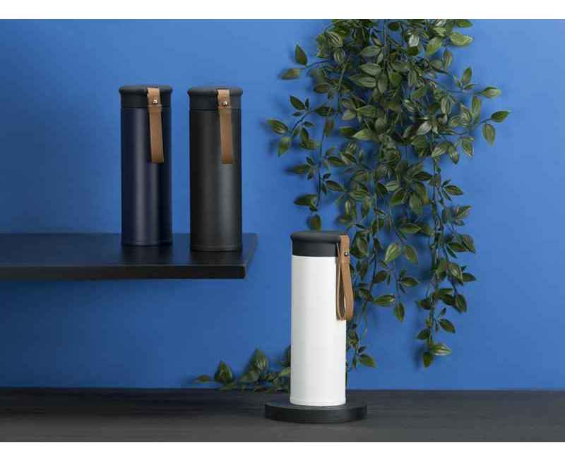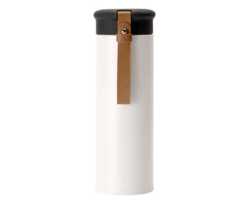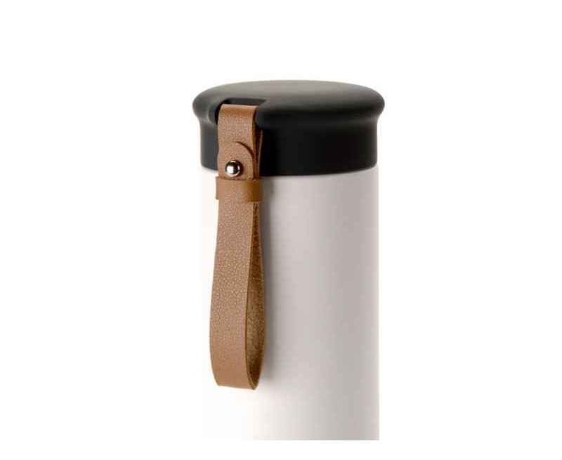 Термос герметично завинчивается на крышку, оснащенную съемным ремешком из качественной ПУ кожи. Крышка имеет прорезиненное покрытие, что создает интересное сочетание текстур в рамках одной модели. Корпус имеет элегантную рельефную поверхность с антискользящим эффектом.