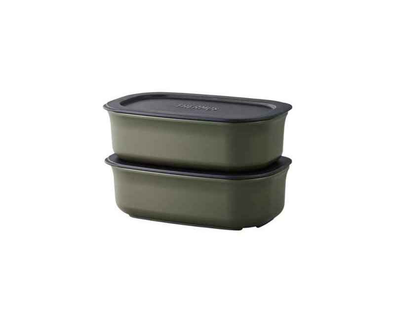 Два контейнера объёмом по 300 мл предназначены для хранения основных блюд, закусок, салатов, гарниров и десертов. Для удобства открывания контейнера на крышке с двух противоположных стороны предусмотрены специальные выступы. В комплект входит съёмная перегородка, которая позволяет разделить один из контейнеров на две части – для двух различных блюд. Эти контейнеры подходят для разогрева пищи в микроволновке (с открытой крышкой) и для хранения продуктов в холодильнике.
