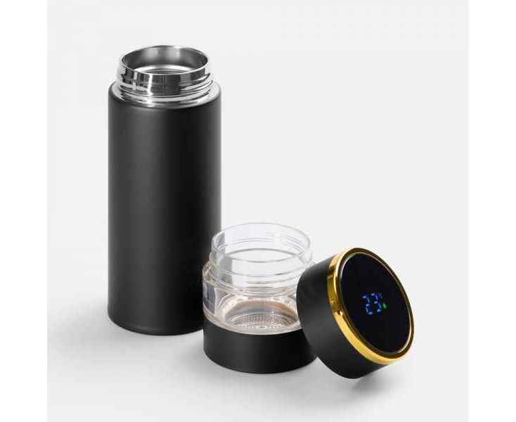 Умная термобутылка для заваривания Thermory отображает температуру жидкости на ЖК-дисплее: точные данные собирает встроенный в крышку датчик. Стенки из нержавеющей стали и вакуумная изоляция корпуса сохраняют напитки горячими (60 °C) в течение 8 часов или прохладными (10 °C) в течение 12 часов.