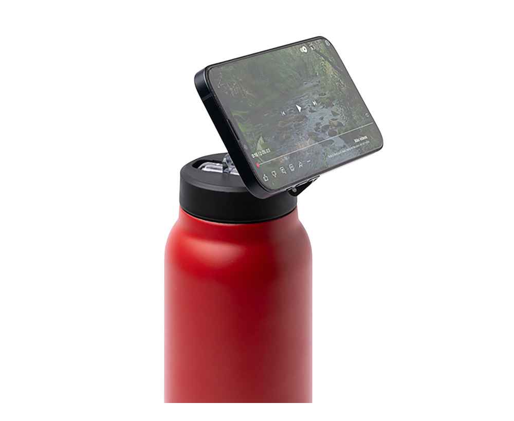 Термобутылка с двойными стенками и магнитным кольцом для крепления мобильного телефона. Корпус из переработанной нержавеющей стали 304. Складная трубочка и нескользящая резиновая накладка на дне. Объём: 750 мл. Упаковка: эко-коробка.