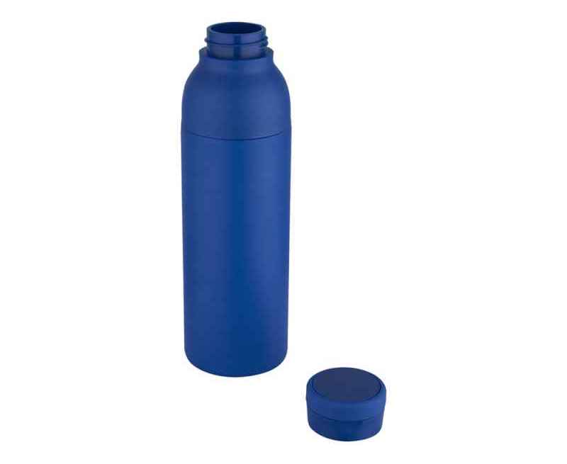 Бутылка для воды с двойными стенками, вакуумной изоляцией, из нержавеющей стали сертифицированной согласно RCS, с незаметной встроенной в крышку силиконовой ручкой. Двухкомпонентная конструкция облегчает простую очистку, а прочное порошковое покрытие и медное покрытие гарантируют долговечность. Поставляется в подарочной коробке из переработанного картона. Объем: 650 мл. 80% Нержавеющая сталь из переработки, сертифицированная RCS, 10% Пластик PP, 10% Силиконовый Пластик. упаковка FSC Mix Credit P5.1 CU-COC-877277.