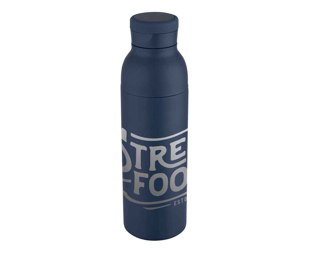 Бутылка для воды с двойными стенками, вакуумной изоляцией, из нержавеющей стали сертифицированной согласно RCS, с незаметной встроенной в крышку силиконовой ручкой. Двухкомпонентная конструкция облегчает простую очистку, а прочное порошковое покрытие и медное покрытие гарантируют долговечность. Поставляется в подарочной коробке из переработанного картона. Объем: 650 мл. 80% Нержавеющая сталь из переработки, сертифицированная RCS, 10% Пластик PP, 10% Силиконовый Пластик. упаковка FSC Mix Credit P5.1 CU-COC-877277.