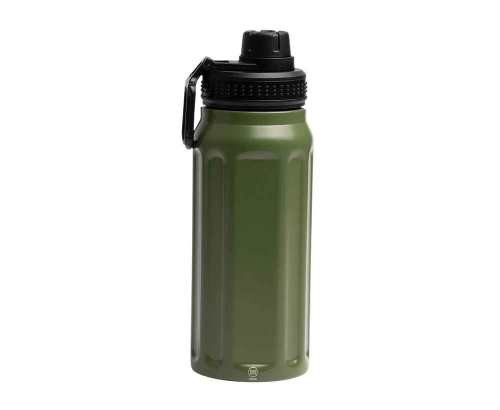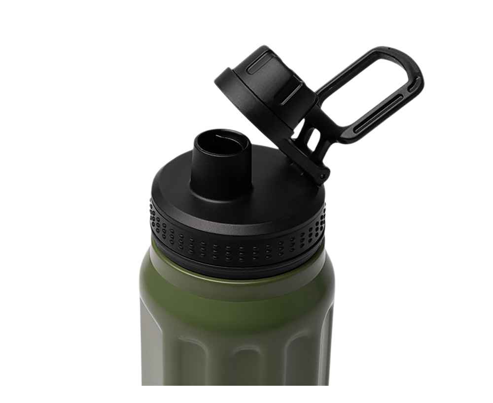 Удобство переноски: выдвижная ручка позволяет легко фиксировать бутылку на пальцах или крепить к рюкзаку