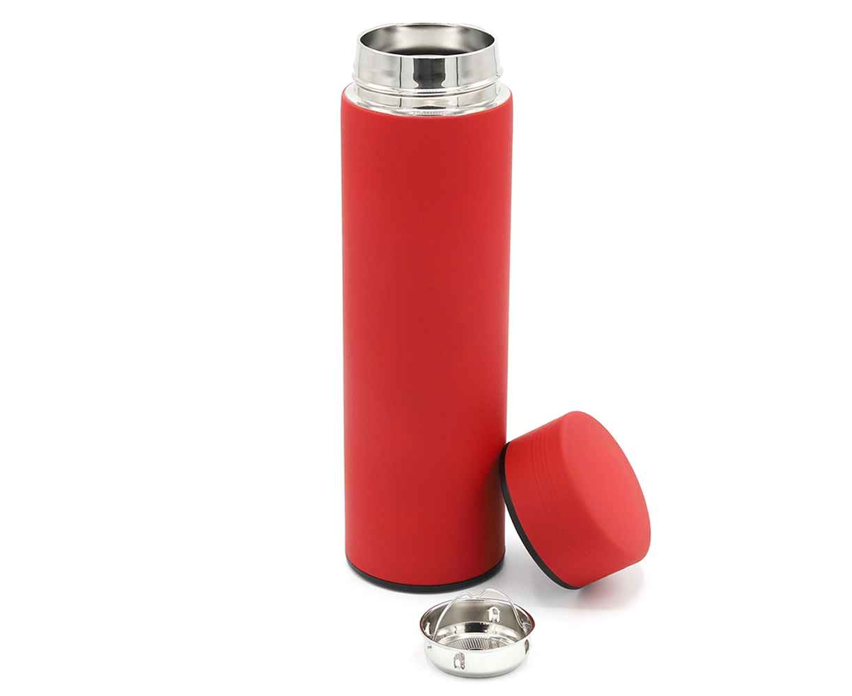 Необычайно приятный благодаря покрытию soft-touch термос BRONX в классической форме прекрасен и надежен как и вся классика. Внутри имеется съемное ситечко-инфьюзер из нержавеющей стали, что позволяет настаивать травяные напитки и чай. Красный цвет максимально приближен к пантону 185C