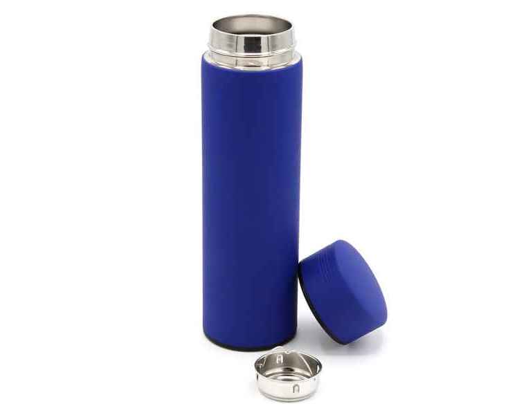 Необычайно приятный благодаря покрытию soft-touch термос BRONX в классической форме прекрасен и надежен как и вся классика. Внутри имеется съемное ситечко-инфьюзер из нержавеющей стали, что позволяет настаивать травяные напитки и чай. Синий цвет максимально приближен к пантону 2738C