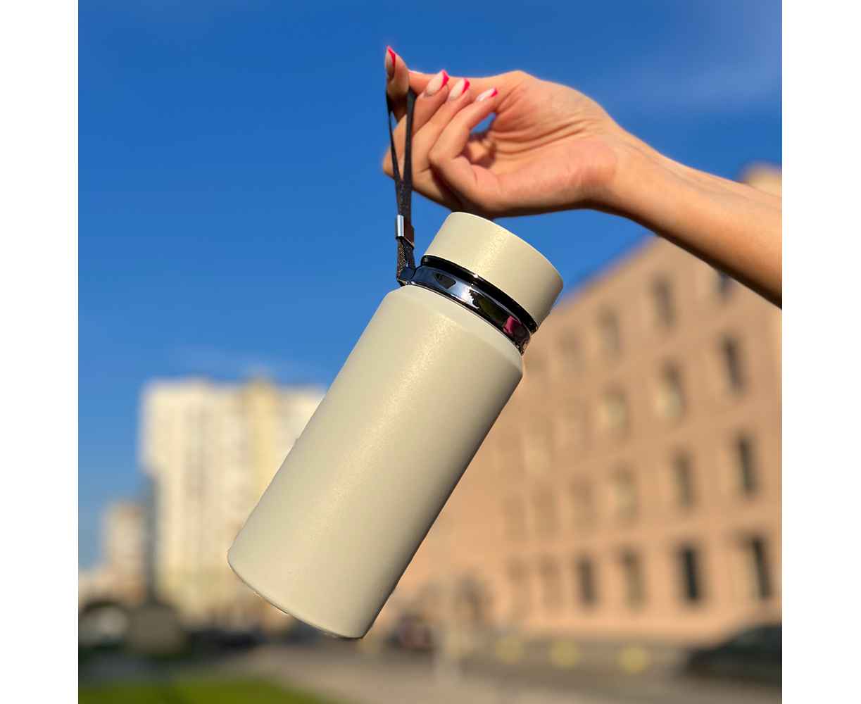 Термос имеет полуматовую обработку с эффектом текстурированности, что выражается в изменении цвета от серо-белого до абсолютно белого в зависимости от освещения. Чем естественнее и ярче освещение, тем более белым выглядит термос, что придает ему особую элегантность и изящество!