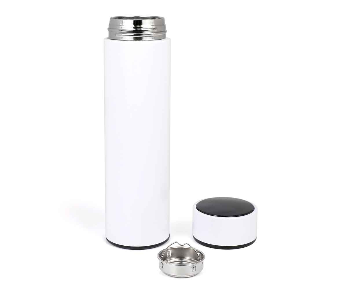 Нужный подарок с современными возможностями. Данный термос обладает сенсорным дисплеем для отображения температуры содержимого. Батарея рассчитана на 80000 касаний. Внутри встроено ситечко для чая и других напитков. Корпус обладает приятной на ощупь глянцевой поверхностью.
