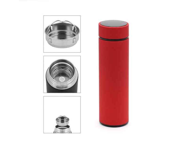 Нужный подарок с современными возможностями. Данный термос обладает сенсорным дисплеем для отображения температуры содержимого. Батарея рассчитана на 80000 касаний. Внутри встроено ситечко для чая и других напитков. Корпус обладает приятной на ощупь soft touch поверхностью