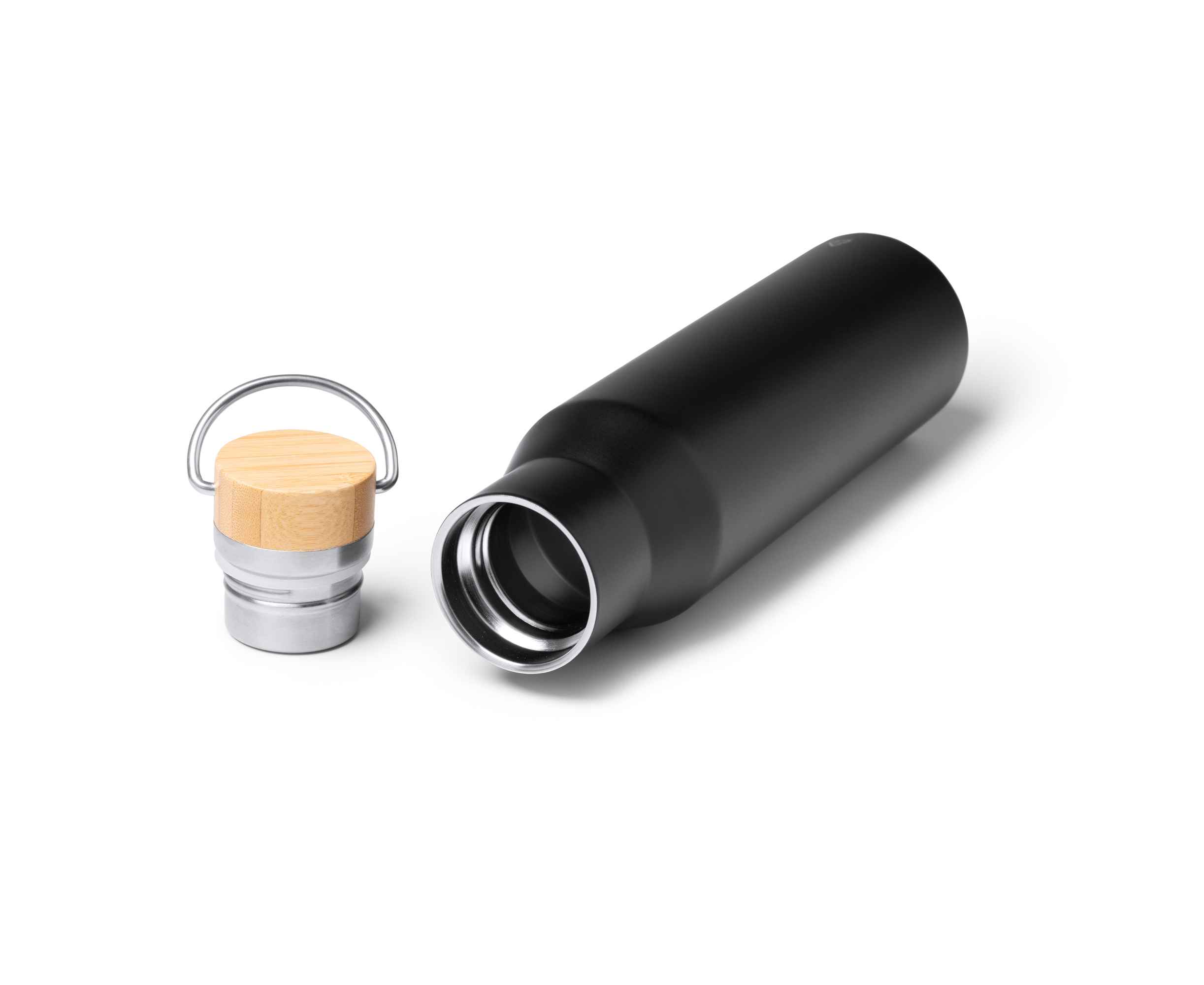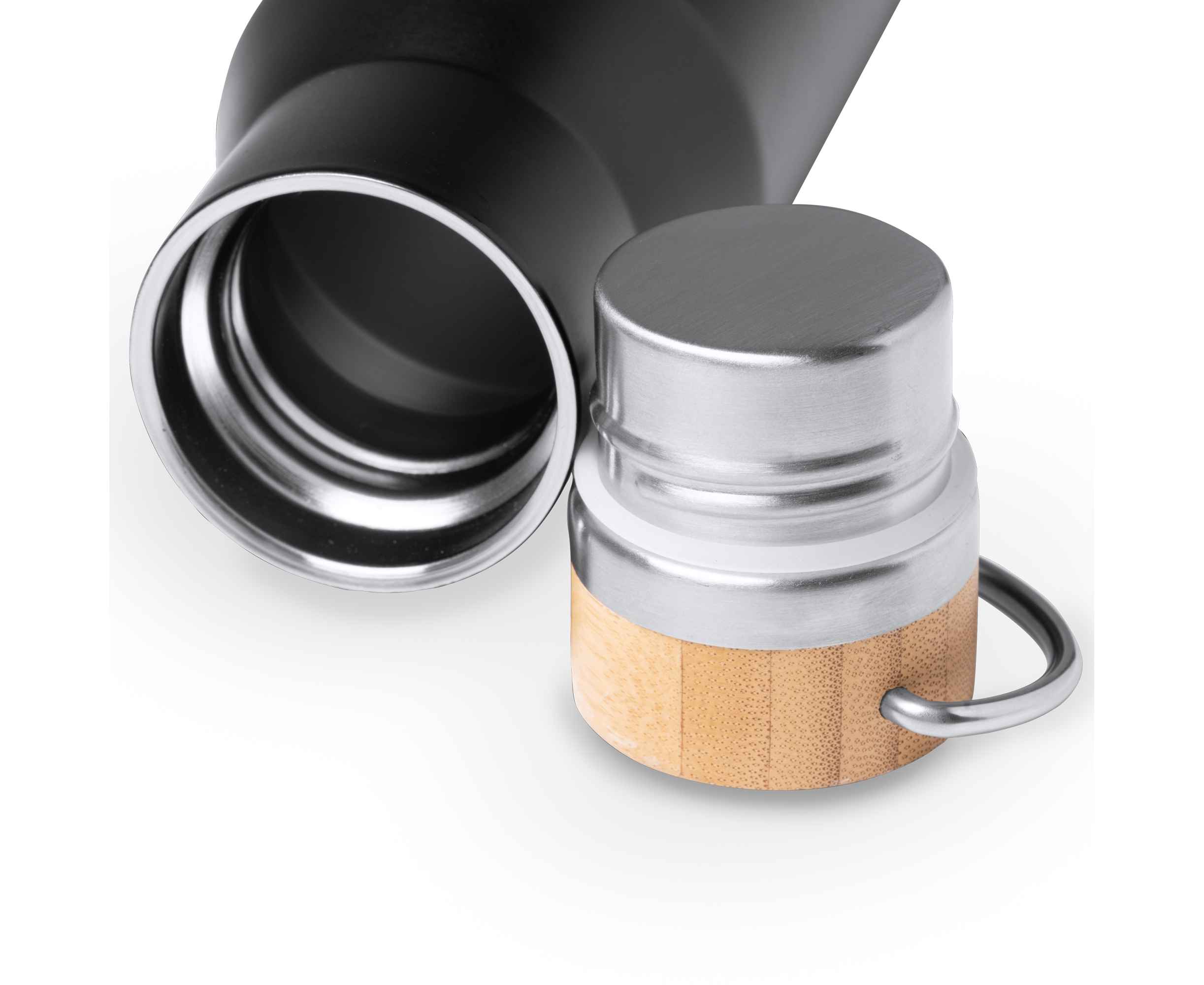 Бутылка-термос из нержавеющей стали 304 с двойной стенкой и бамбуковой крышкой. Емкость: 550 мл. Поставляется в дизайнерской эко-коробке.