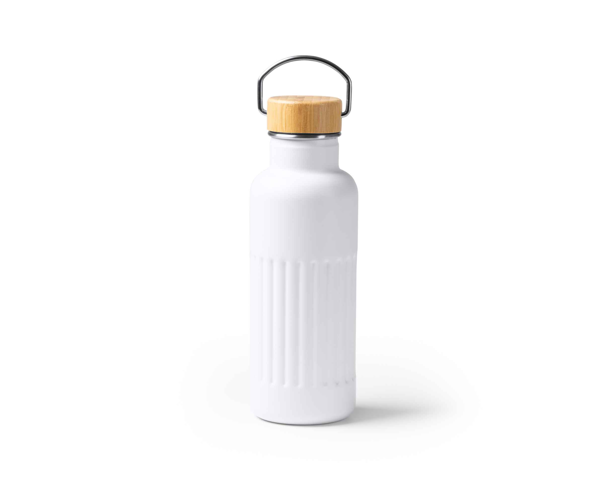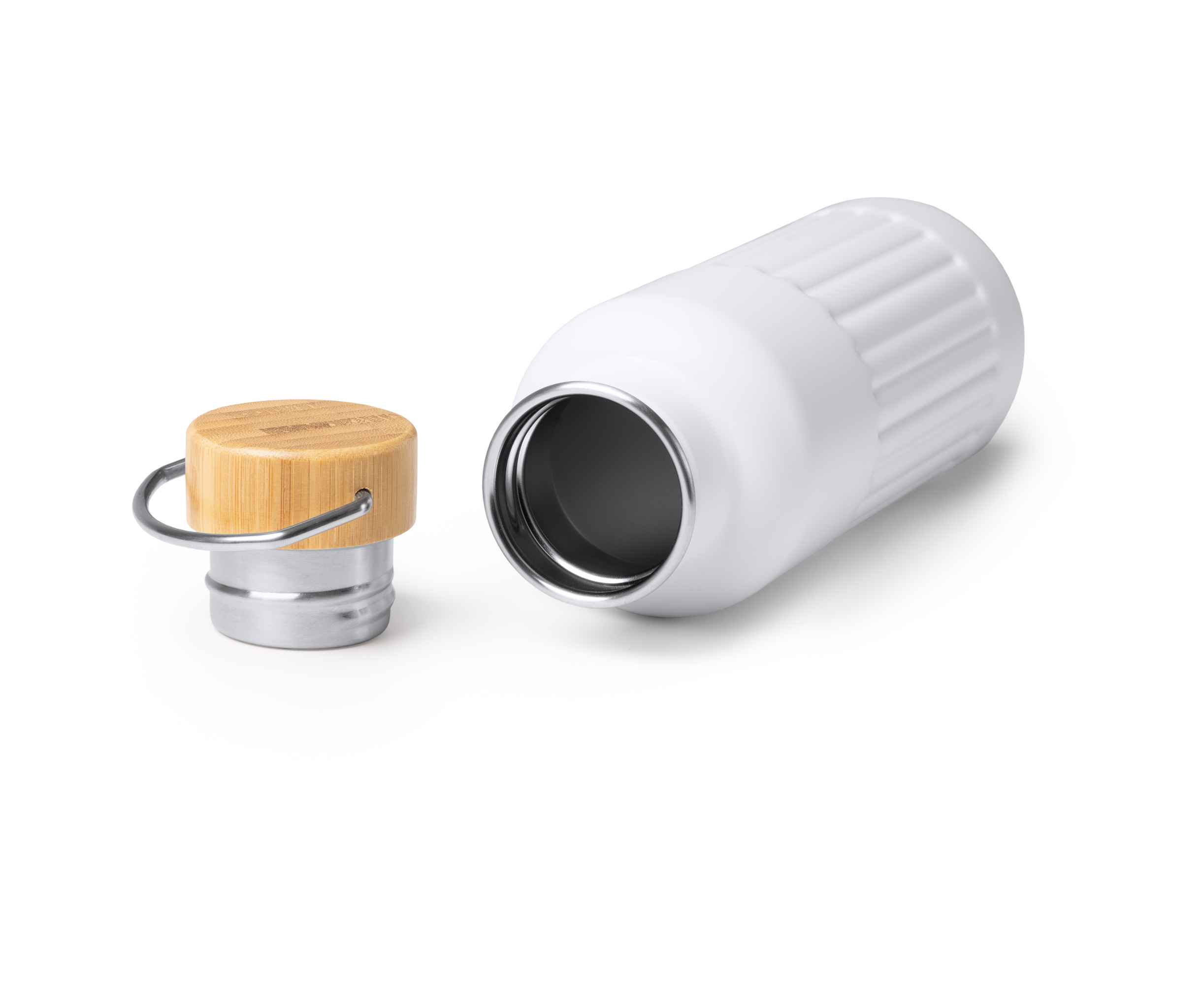 Бутылка-термос из переработанной нержавеющей стали с двойными стенками и бамбуковой крышкой. Емкость: 500 мл.
