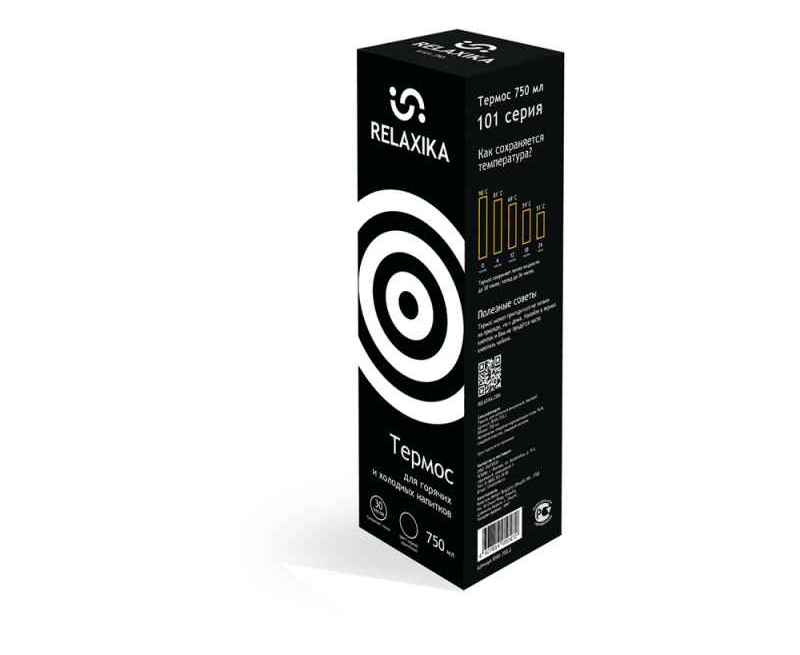 Классический термос Relaxika черного цвета с высокими показателями удержания температуры напитка для походов, путешествий, спорта и ежедневного использования. Прочные двойные стенки из высококачественной нержавеющей стали 18/8 с вакуумной изоляцией гарантируют, что ваш напиток останется холодным в течение 36 часов и горячим до 30 часов. Этот материал не только прочен, но и гигиеничен, не выделяет никаких вредных для здоровья веществ. Ваши напитки сохраняет естественный вкус и не приобретут посторонний запах.