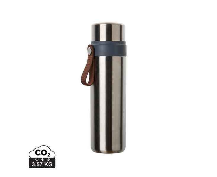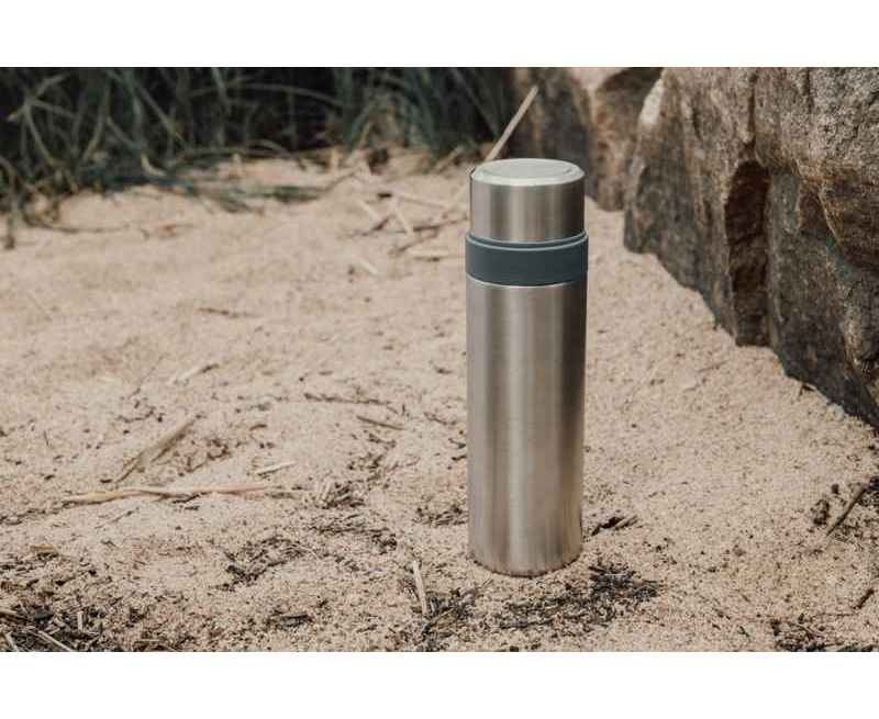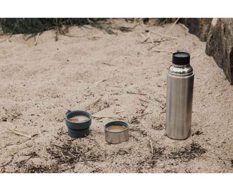 Элегантный дизайн с продуманной функциональностью. Благодаря двойным вакуумным стенкам напитки остаются холодными до 12 или горячими до 6 часов. Практичная крышка разделяется на две кружки — идеально для совместного чаепития на природе. Удобная петля позволяет легко брать термос с собой в любую поездку. Только ручная мойка.