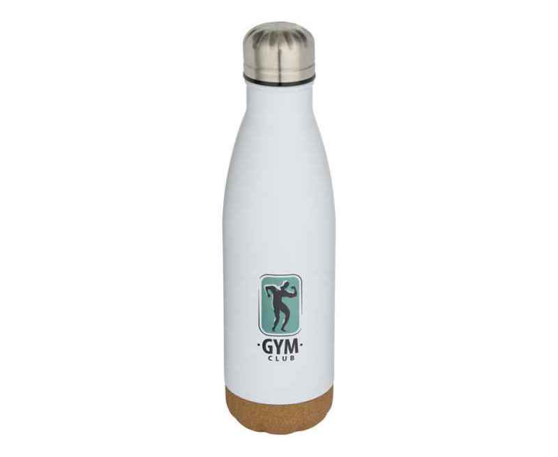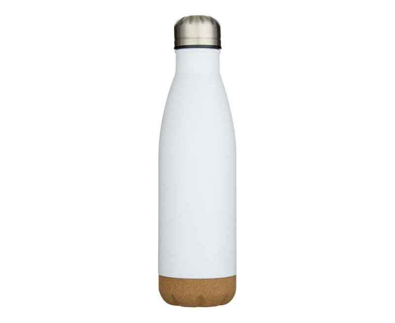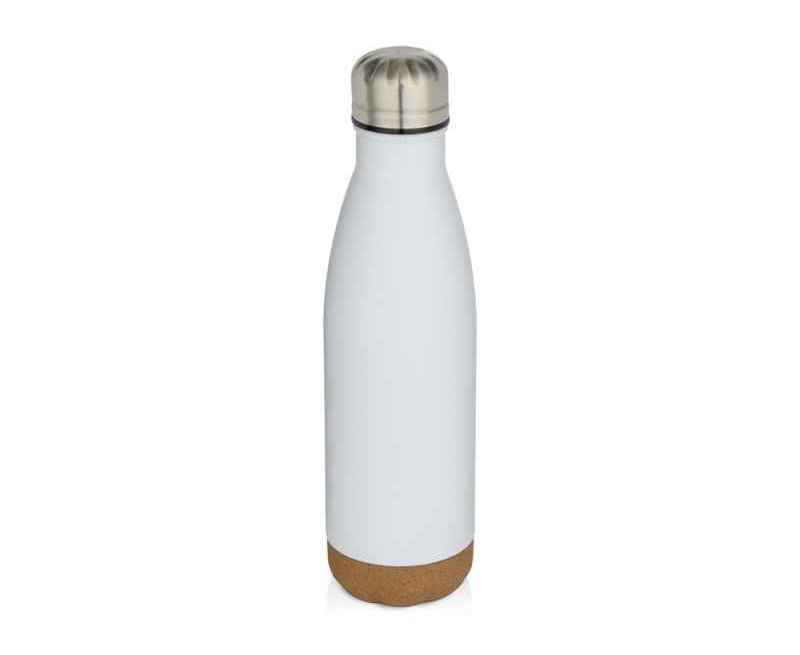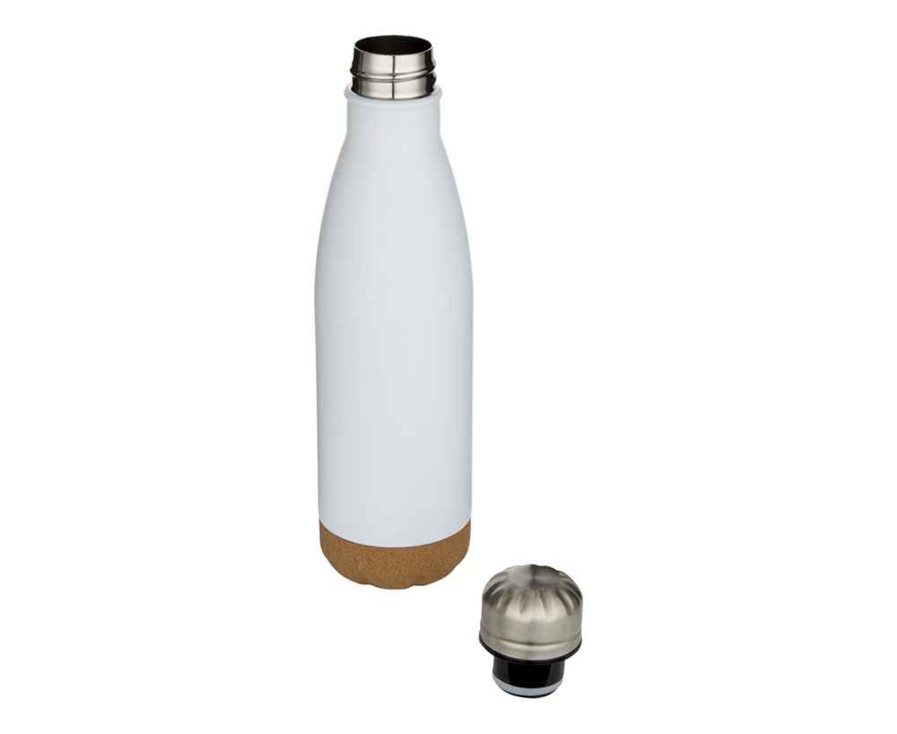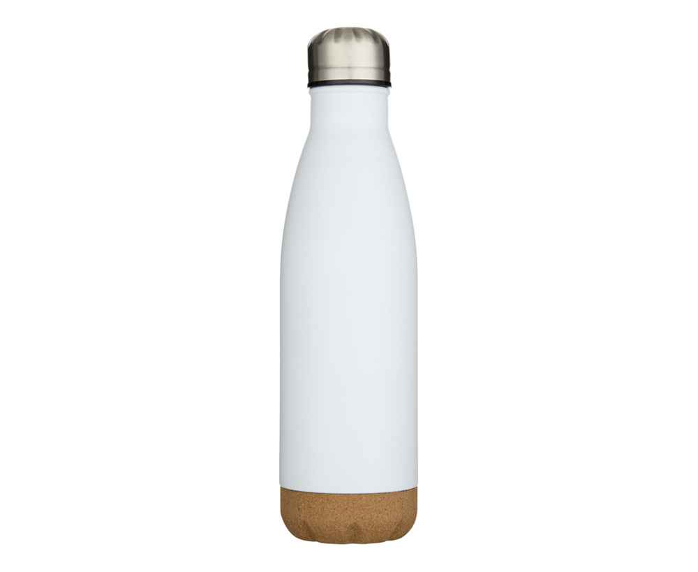 Бутылка для воды из нержавеющей стали с вакуумной изоляцией и пробковыми деталями в нижней части. Двойная изоляция стенок сохраняет напитки горячими или холодными в течение нескольких часов. Поставляется в подарочной коробке из переработанного картона. Объем: 500 мл. 90% нержавеющая сталь, 10% Пробка. упаковка FSC Mix Credit P5.1 CU-COC-877277.