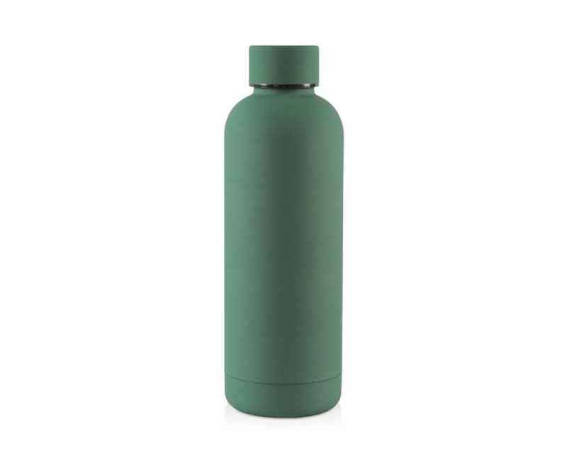 Термобутылка из нержавеющей стали с soft-touch покрытием, двойной корпус с вакуумной изоляцией и вместимостью до 550 мл.