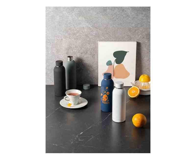 Термобутылка из нержавеющей стали с soft-touch покрытием, двойной корпус с вакуумной изоляцией и вместимостью до 550 мл.