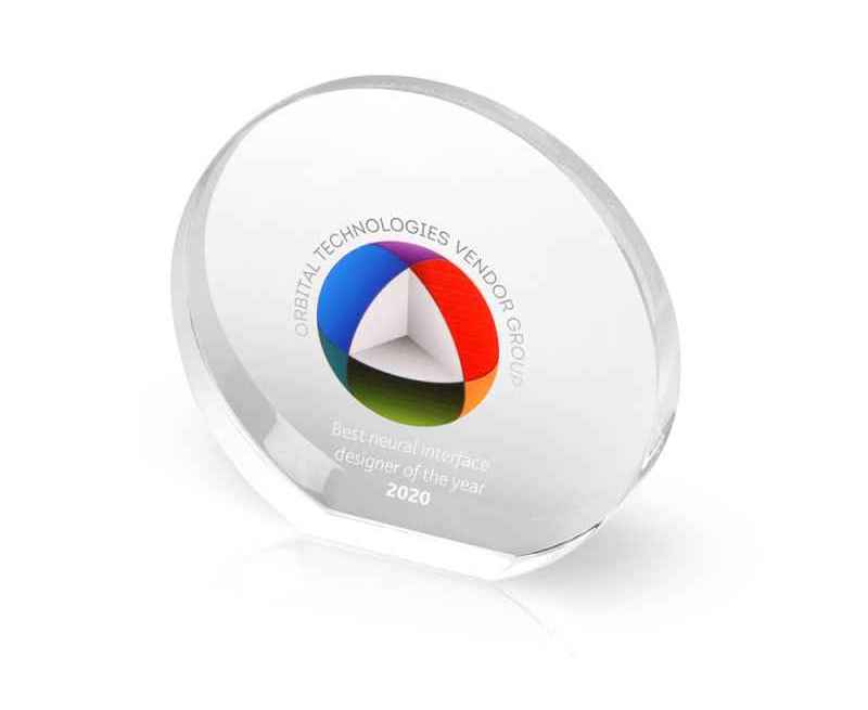 Стеклянная награда плавной круглой формы. Размер награды и особенности геометрической формы обеспечивают большую площадь под нанесение.