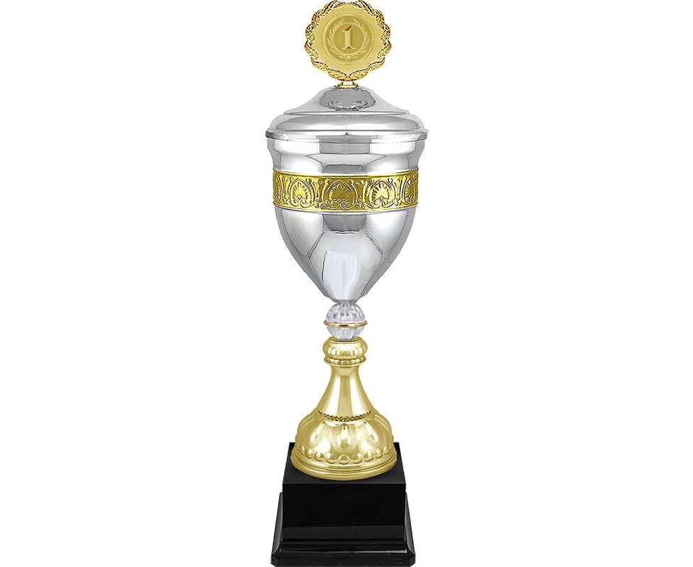 Кубок традиционной формы с элегантной чашей и фигурой из металла. Крышка съемная и поставляется отдельно. Металлическая эмблема 50 мм в комплекте. Скидка по дисконтной карте ограничена.