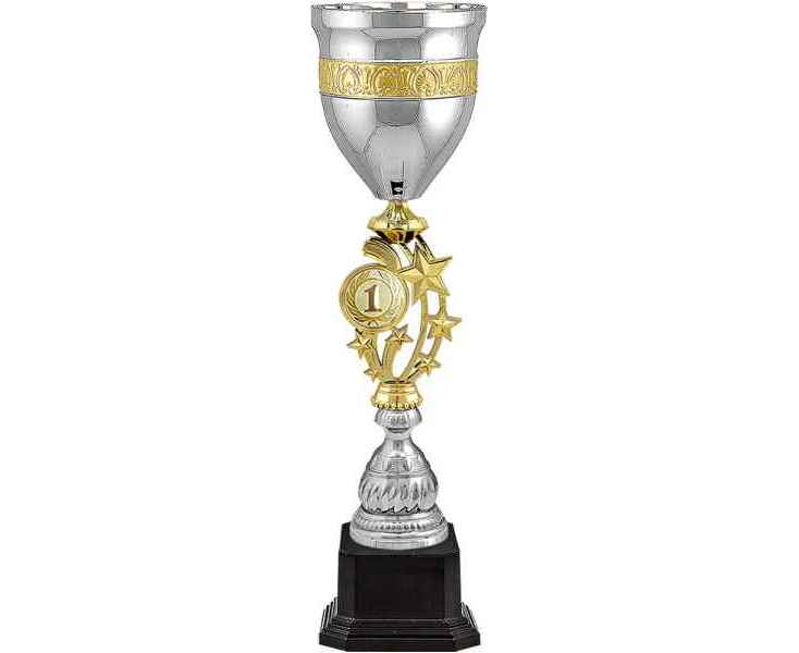 Кубок, серия кубков традиционной формы с элегантными чашами из металла и изысканными стемами из пластика. Металлическая эмблема 1,2,3 место в комплекте.