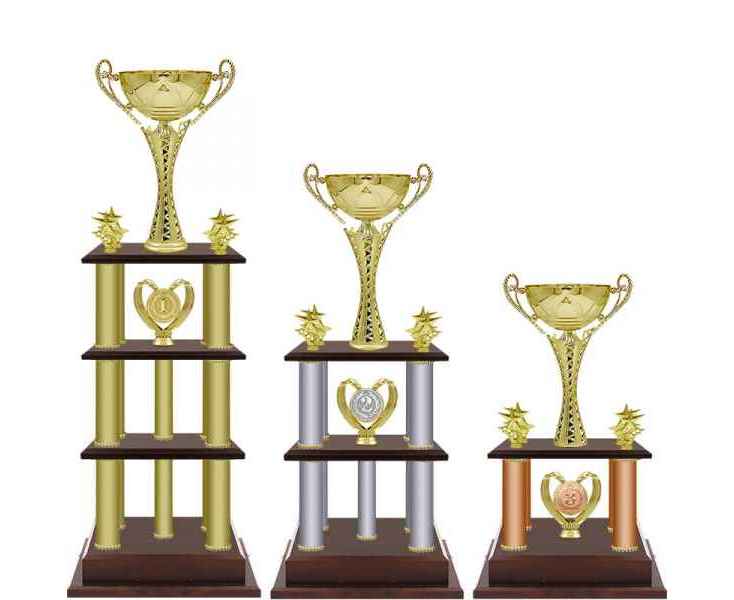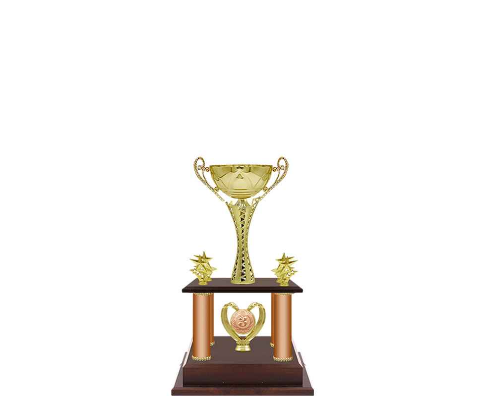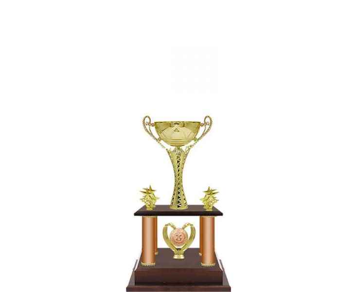 Кубок оригинальной формы с нестандартными дополнениями и подставкой в виде подиума.