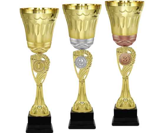 Серия кубков традиционной формы с элегантными двойными чашами из металла и изысканными стемами из пластика. Металлическая эмблема в комплекте. ВНИМАНИЕ! Скидка по дисконтной карте ограничена.