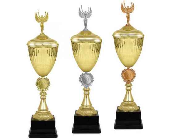 Серия кубков традиционной формы с элегантными чашами из металла и изысканными стемами из пластика. Пластиковая фигура Ника 14см в комплекте. ВНИМАНИЕ! Крышки съемные и поставляются отдельно.